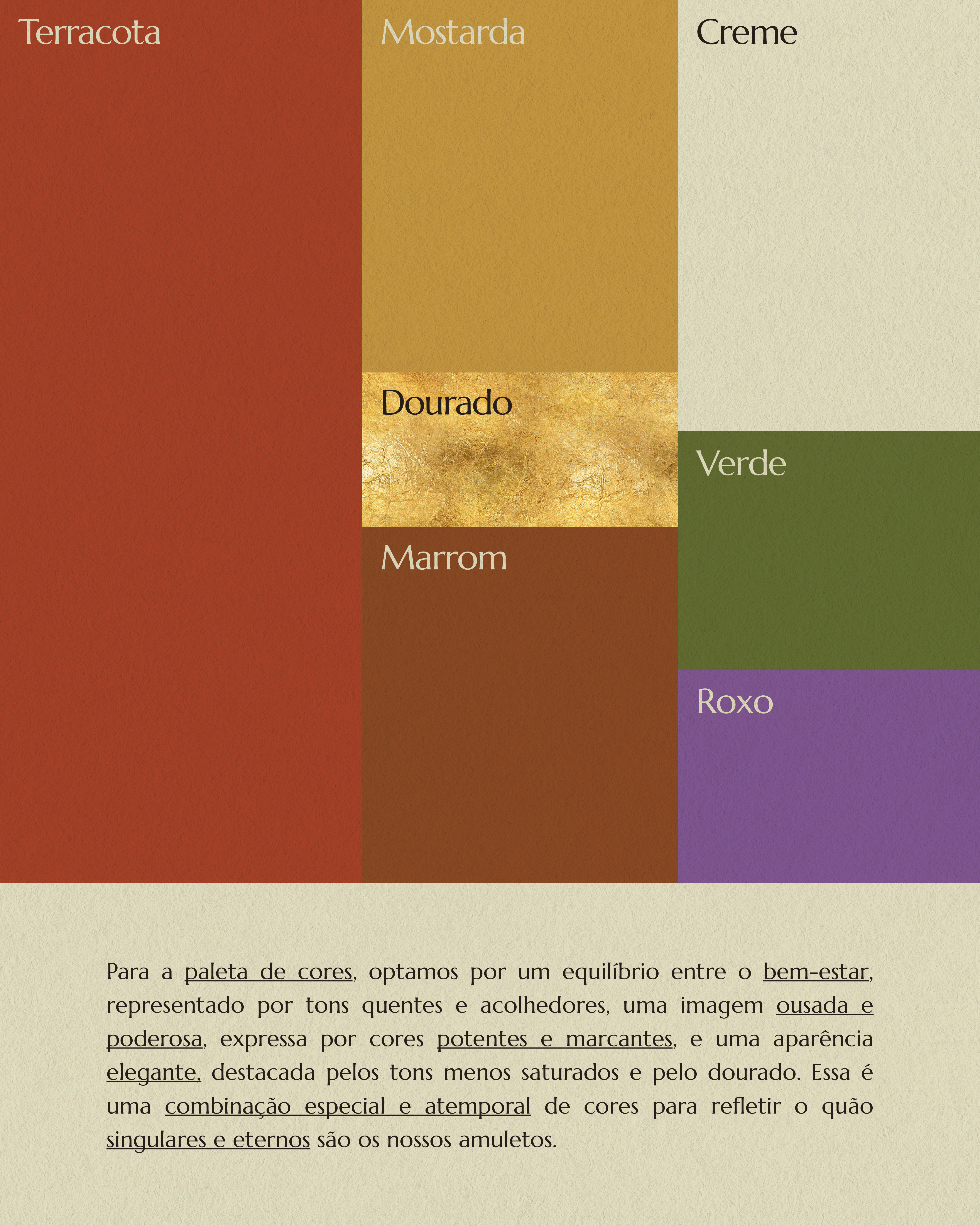 Considerando os desejos do novo público-alvo (mulheres maduras, sofisticadas e independentes, que valorizam o bem-estar, a originalidade e o autocuidado), entendemos que a marca precisava comunicar mais do que estética. Era necessário construir uma narrativa sólida que revelasse o valor simbólico de cada peça como um amuleto: uma ferramenta de conexão, força, expressão e empoderamento pessoal.