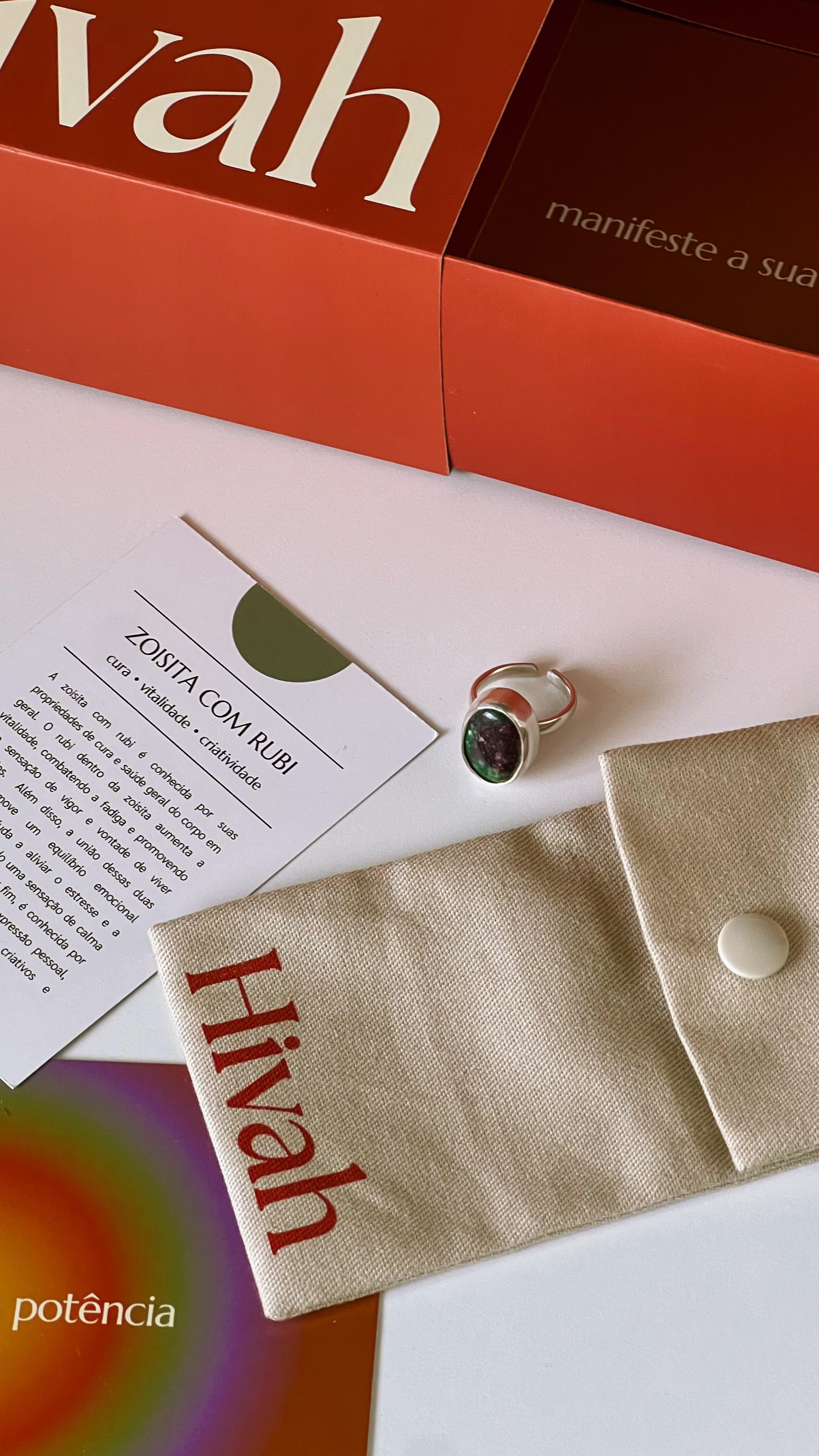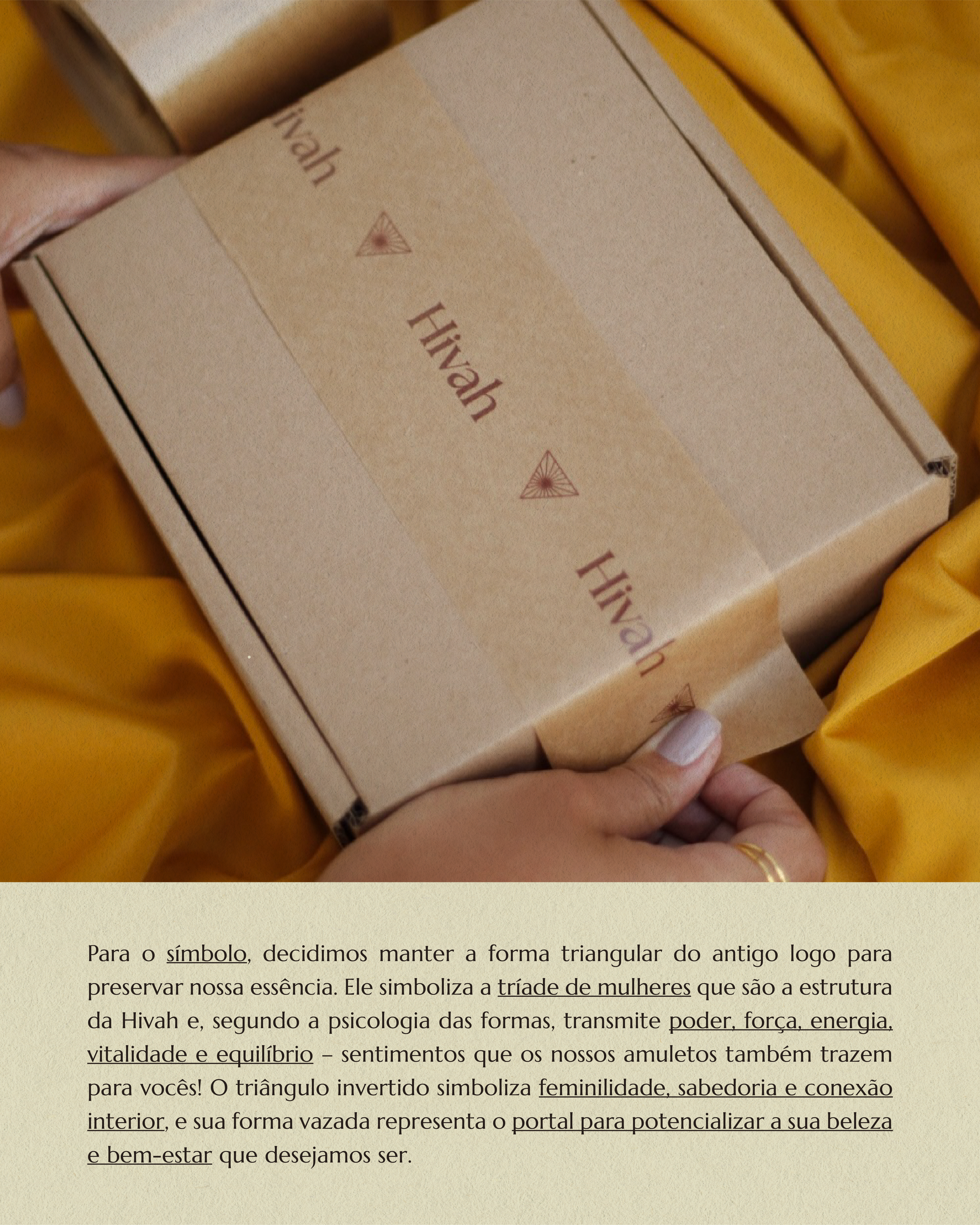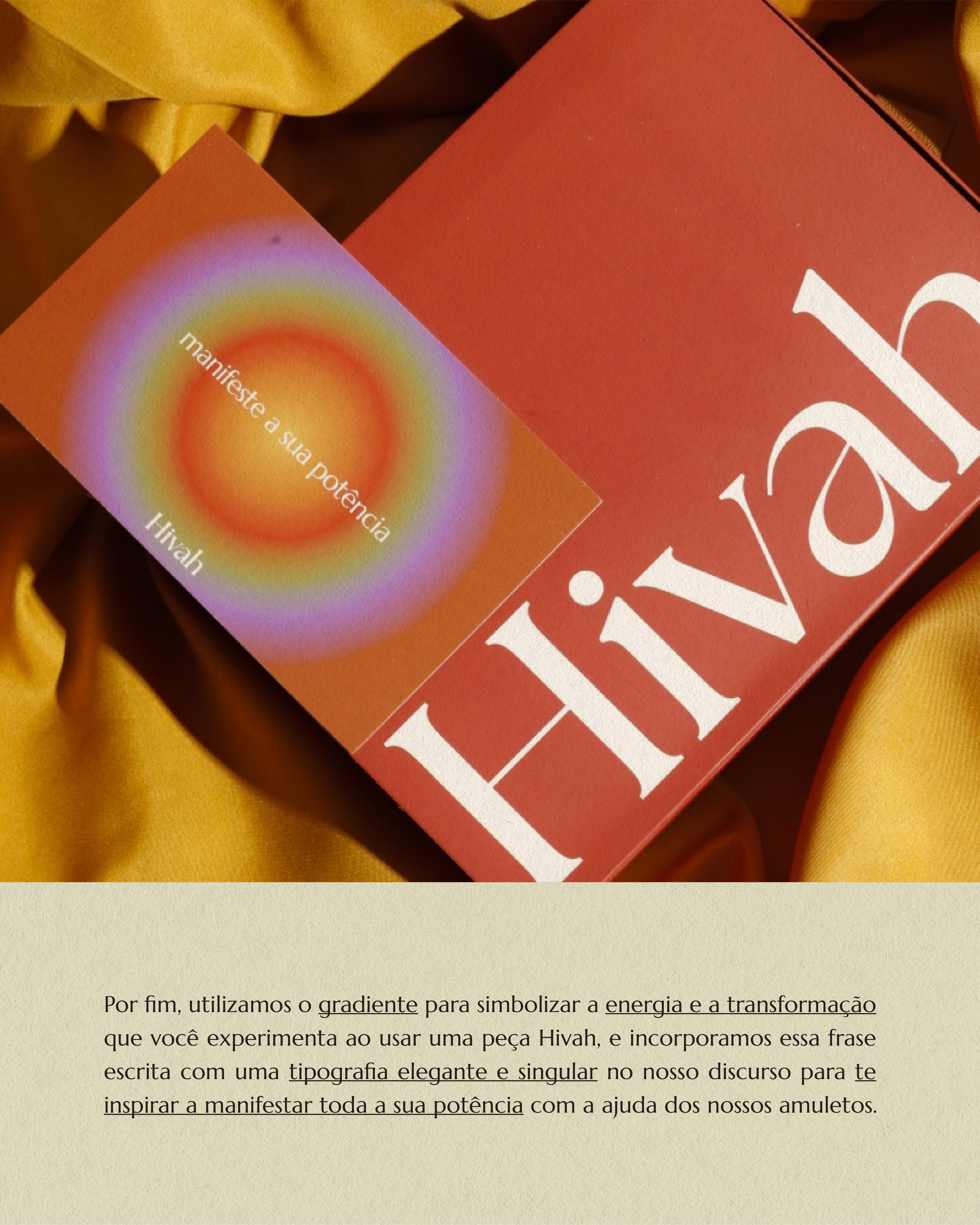 O objetivo se tornou traduzir a potência dos amuletos da Hivah por meio de expressões visuais e verbais que unissem sofisticação e acolhimento, posicionando-os como objetos que despertam beleza, confiança, bem-estar e energia no dia a dia.
