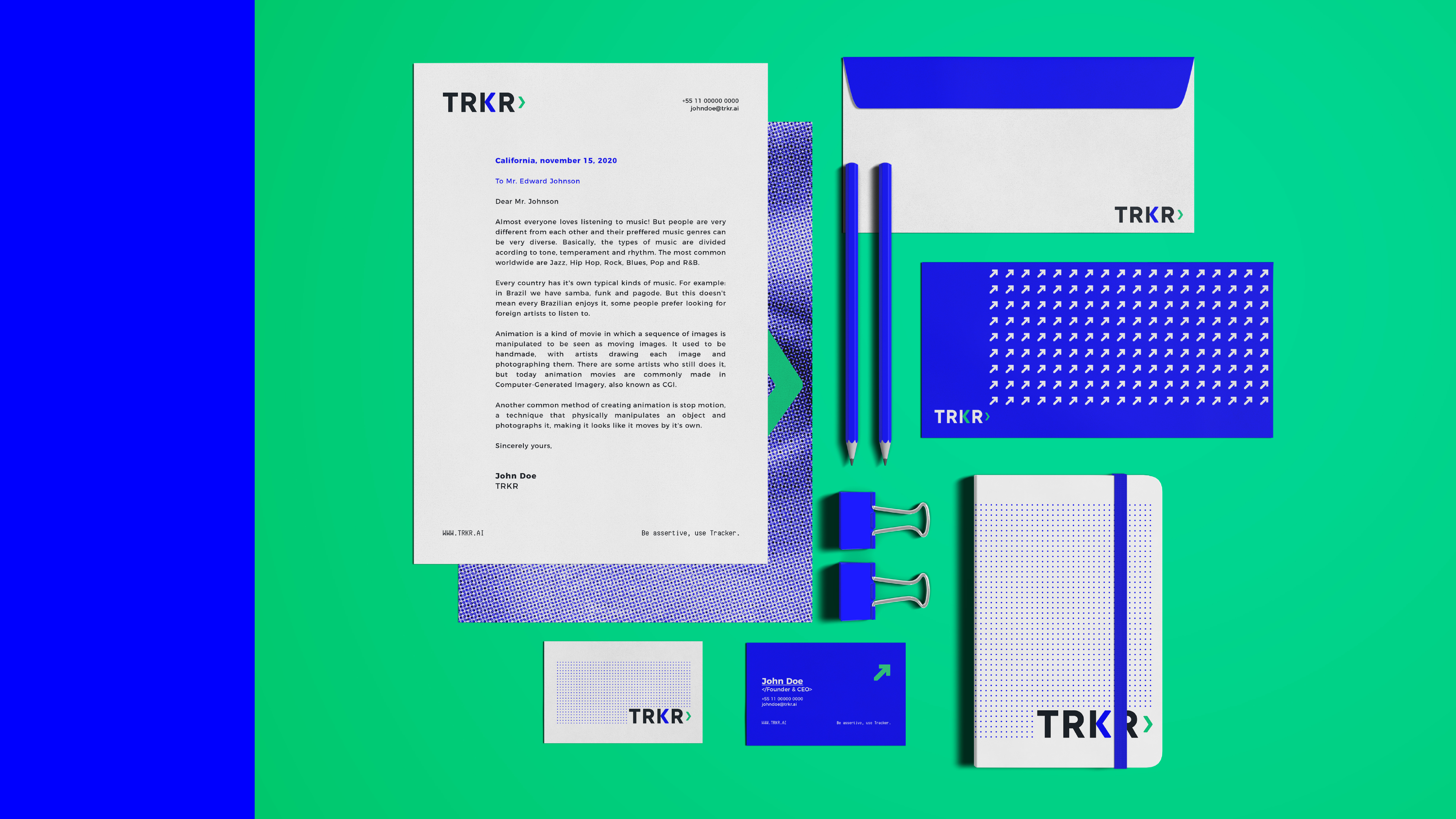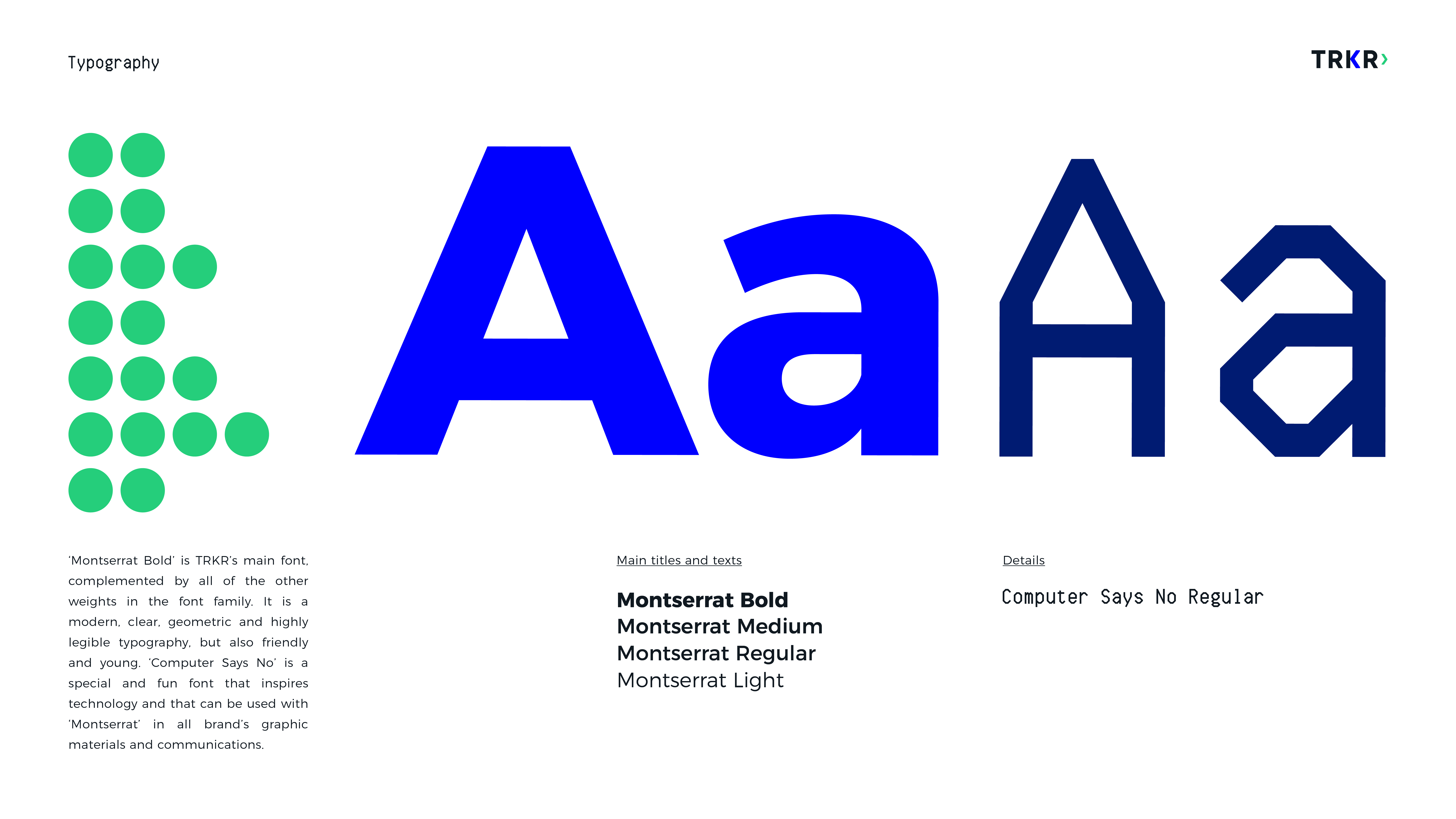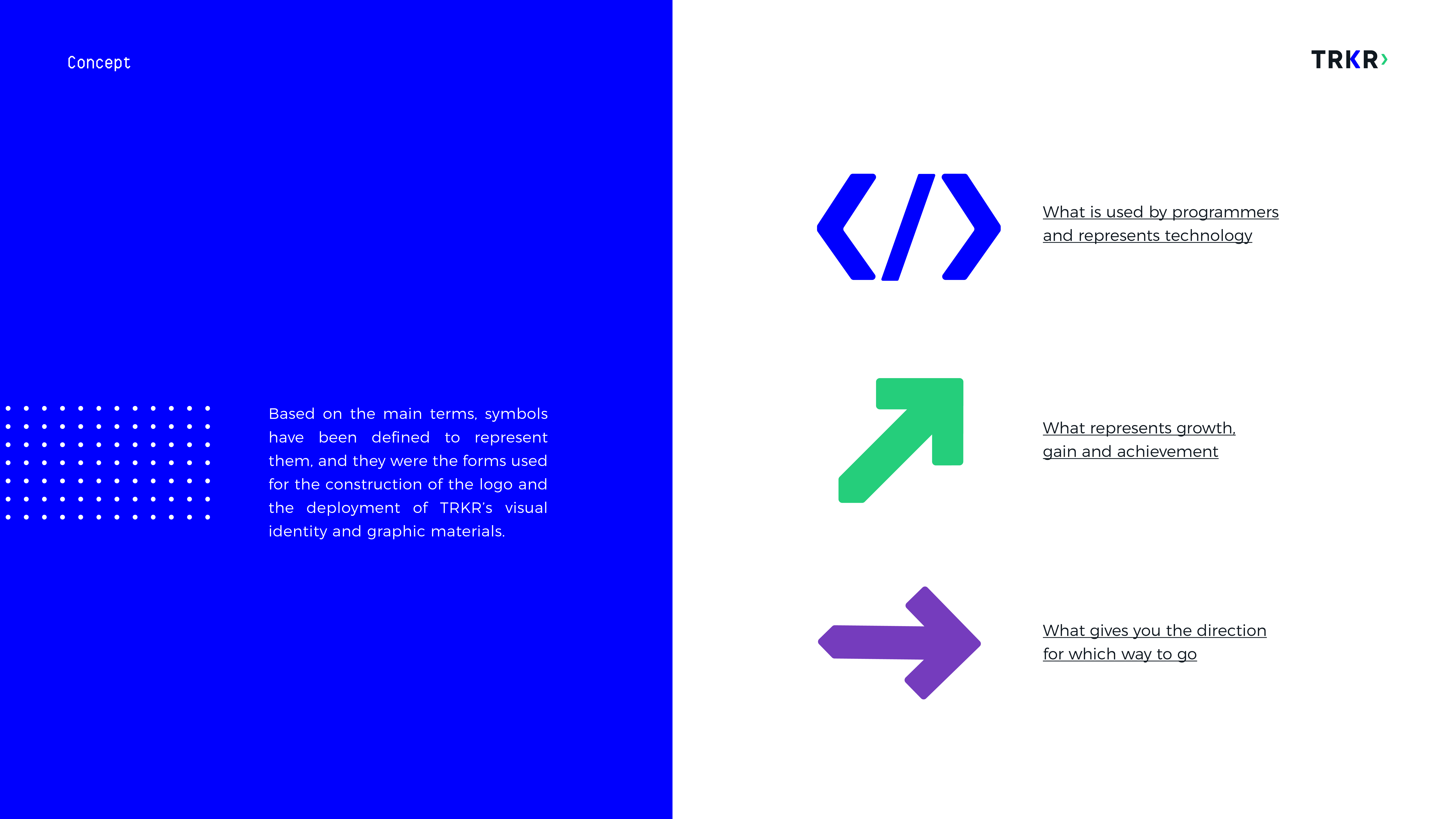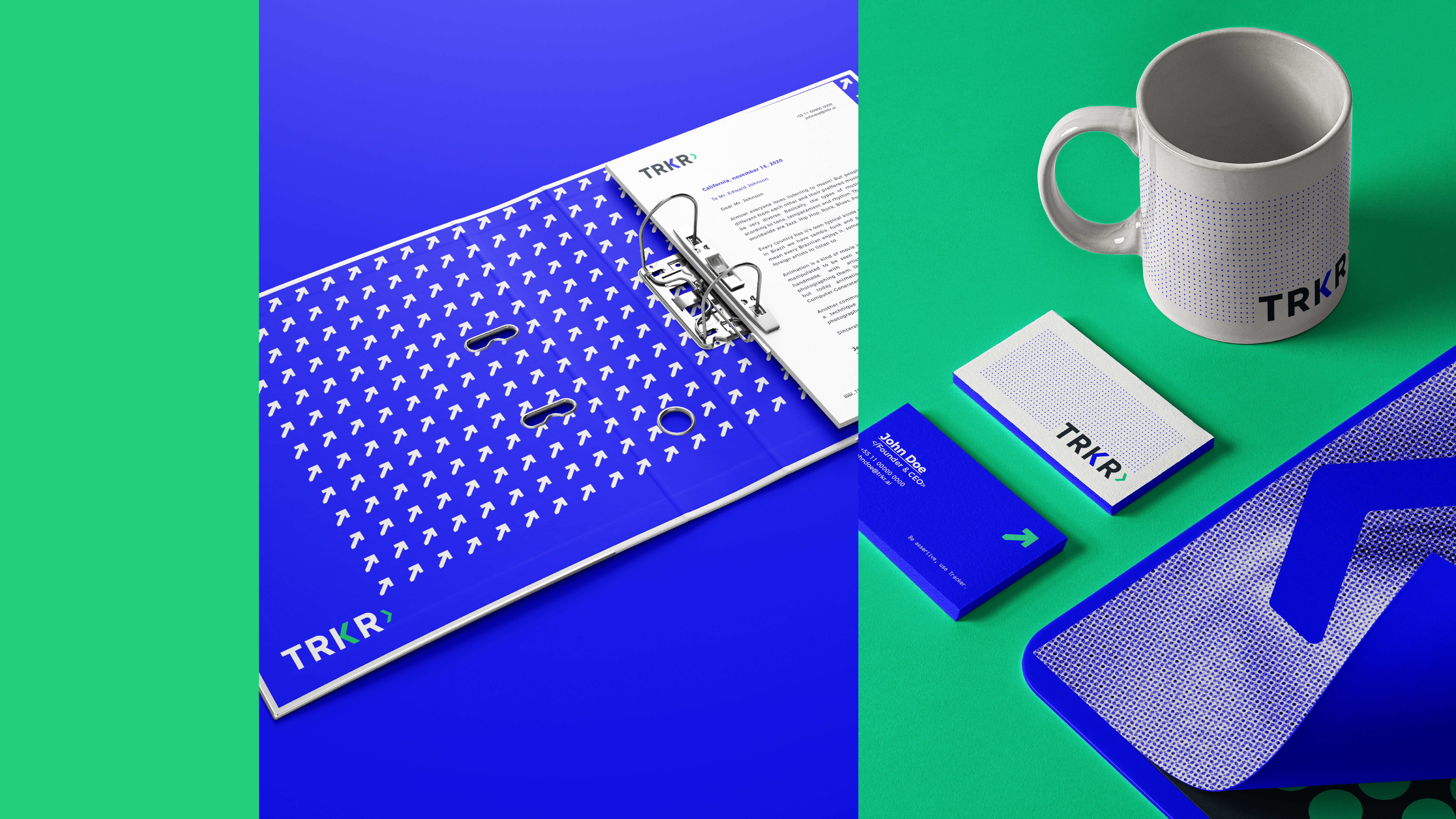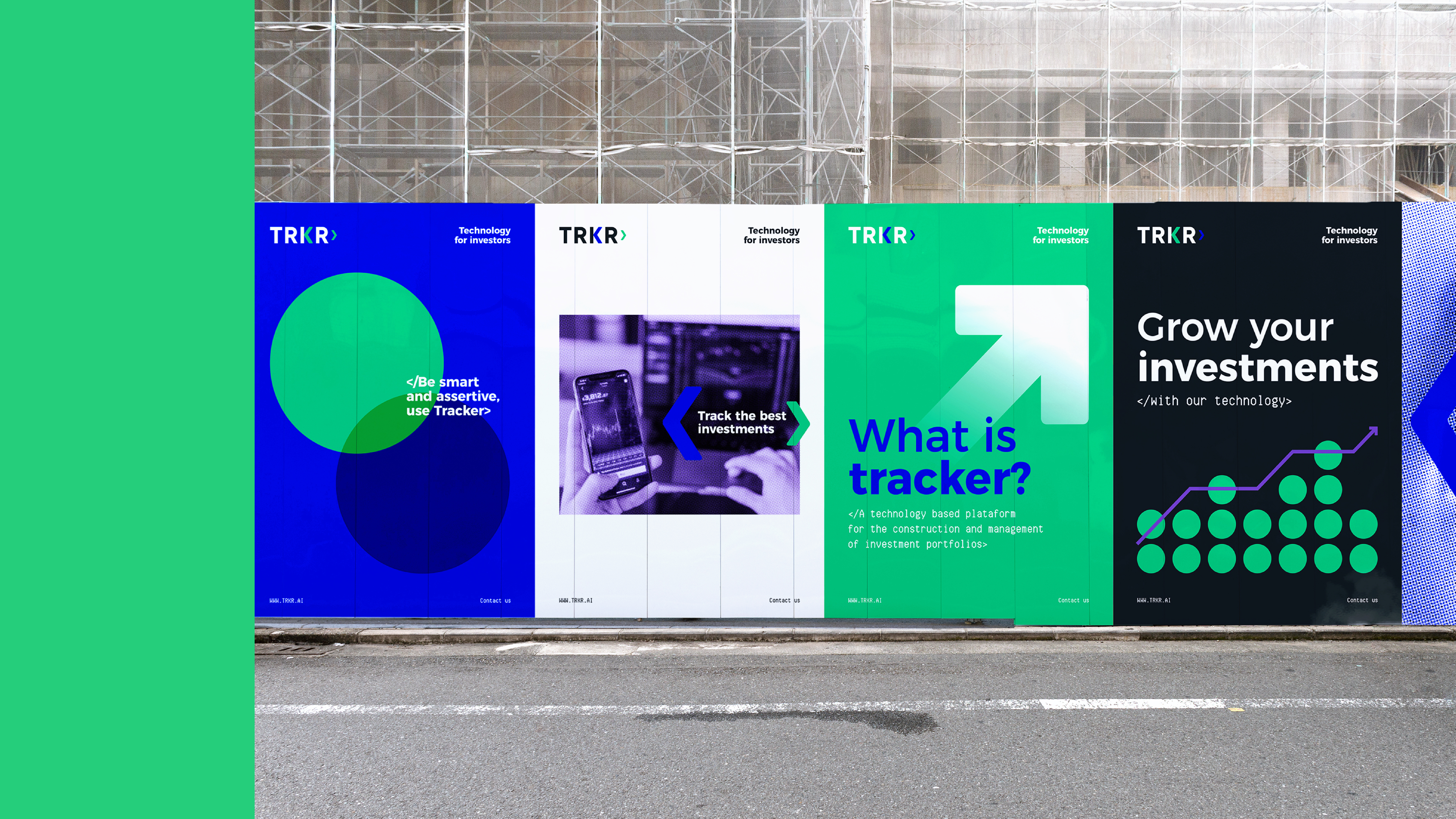 PT ✶ Projeto de identidade visual desenvolvido para a marca TRKR, uma plataforma de tecnologia para a construção e gestão de portfólios de investimento.
