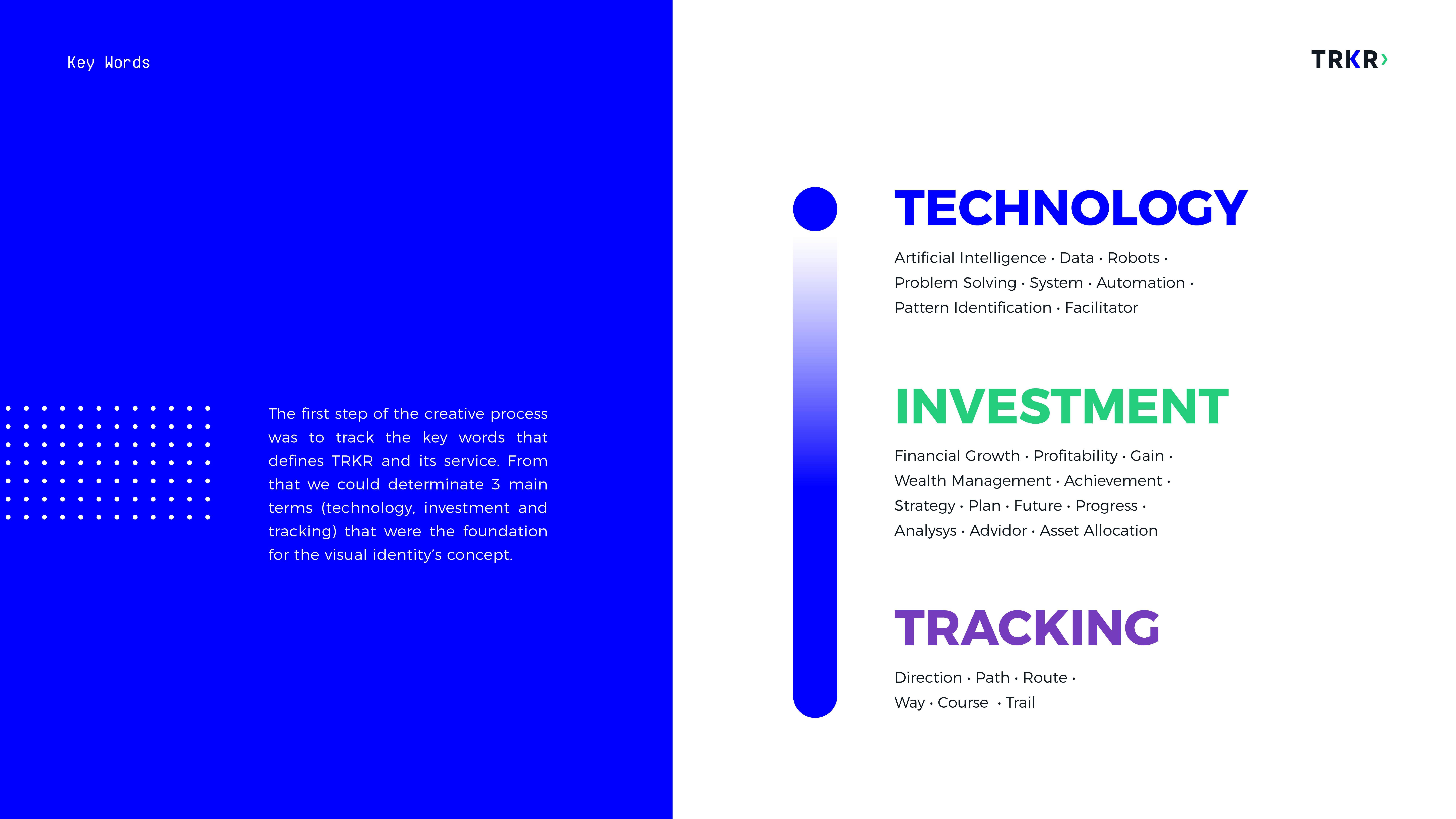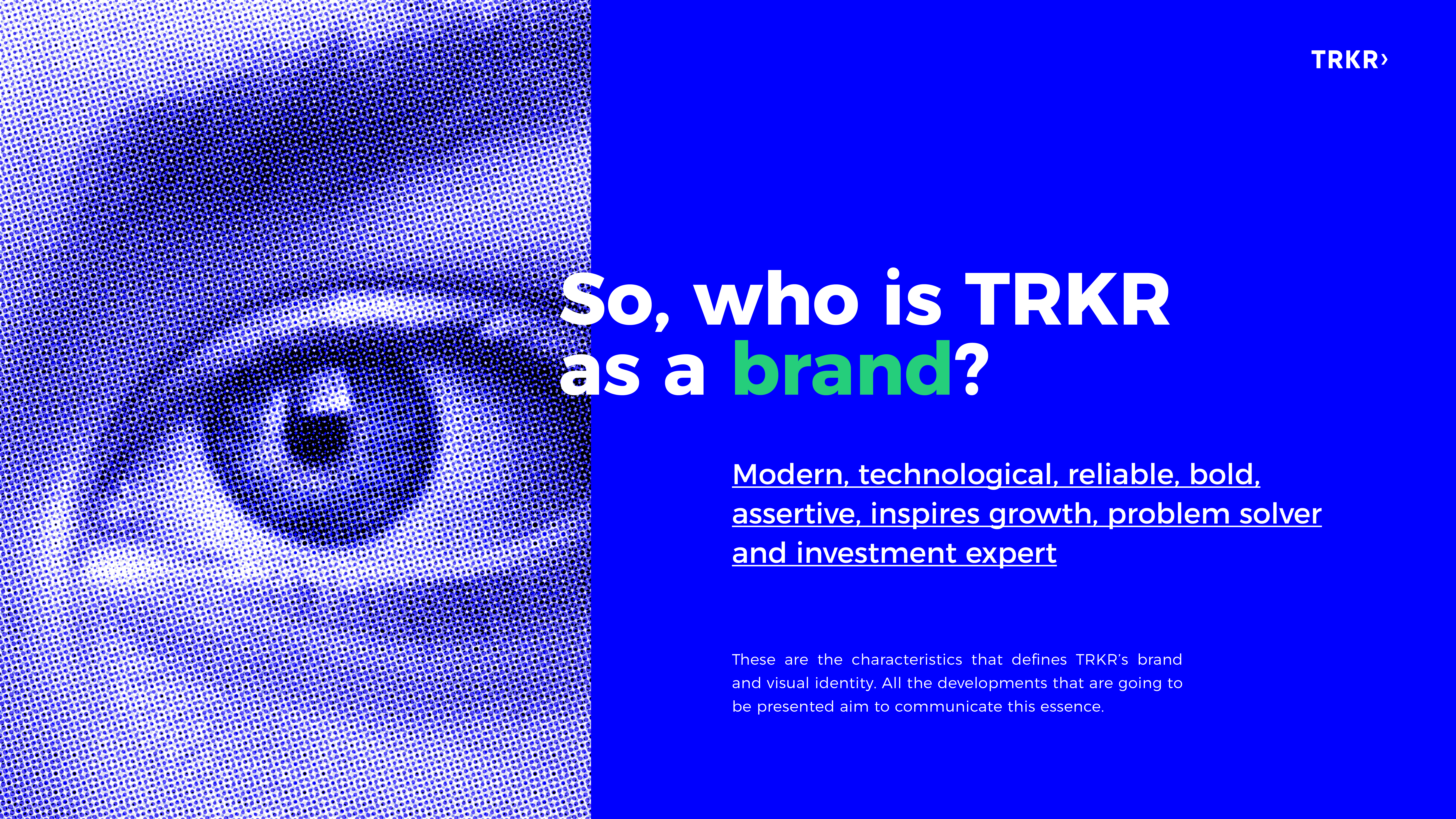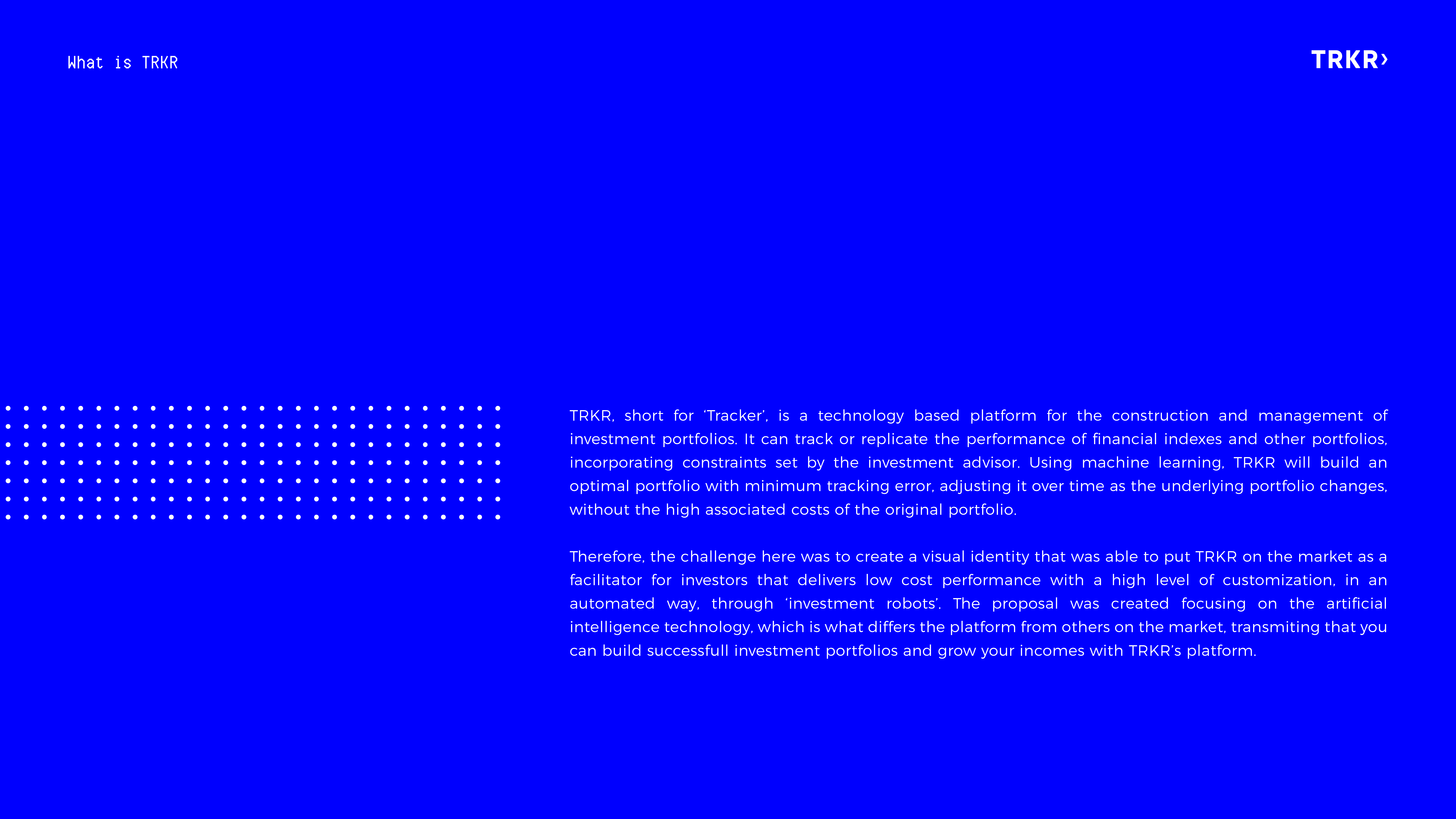 EN ✶ Visual identity project developed for TRKR, a technology based platform for the construction and management of investment portfolios.